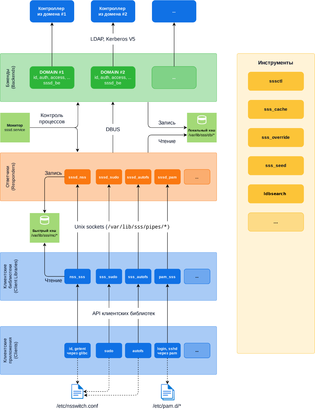 sssd_nss) обеспечивает данными диспетчер службы имен (Name Service Switch, NSS).Ответчик PAM (